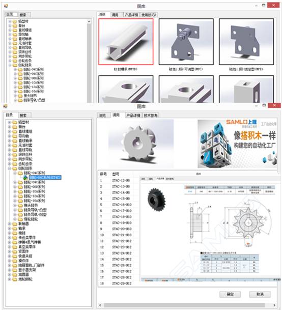 四、 軟件內(nèi)容: 1、《拓普銳三維CAD》2019內(nèi)容建立了完備齊全的基于SolidWorks的三維參數(shù)化標(biāo)準(zhǔn)件、非標(biāo)件圖庫(kù)、企業(yè)件庫(kù),超大容量、最新標(biāo)準(zhǔn)、持續(xù)更新,內(nèi)容包括:電機(jī)、減速機(jī)、氣缸、液壓缸、滾珠絲杠、線性滑軌、起重件、輸送件、腳輪、直線模組、軸承、軸承蓋、潤(rùn)滑件、操作件、聯(lián)軸器、彈簧、管件與管接頭、型材、密封件、螺栓、螺柱、螺母、螺釘、墊圈、擋圈、銷、木螺釘、自攻螺釘、鉚釘、普通平鍵、矩形花鍵、漸開線花鍵,庫(kù)中共有數(shù)萬個(gè)標(biāo)準(zhǔn)件,所有模型件都具有開放數(shù)據(jù)結(jié)構(gòu),可以添加或修改數(shù)據(jù)。從插入的圖形中可以提取出零件的物理屬性(如名稱、代號(hào)、數(shù)量、重量等),可以方便地在圖中查看或標(biāo)注,也可以直接將這些數(shù)據(jù)統(tǒng)計(jì)到明細(xì)表中,并可以將明細(xì)表數(shù)據(jù)導(dǎo)出到外部文件。這樣,設(shè)計(jì)人員就避免了大量重復(fù)、枯燥的繪制和統(tǒng)計(jì)工作,大大提高了設(shè)計(jì)的效率和準(zhǔn)確度。 2、《拓普銳三維CAD》2019軟件為中文界面,適用于各個(gè)階段工程師使用,特別是Solidowrks初學(xué)者,在很短時(shí)間內(nèi)即可掌握三維設(shè)計(jì),快速出圖,《拓普銳三維CAD》2019軟件調(diào)用界面如下: