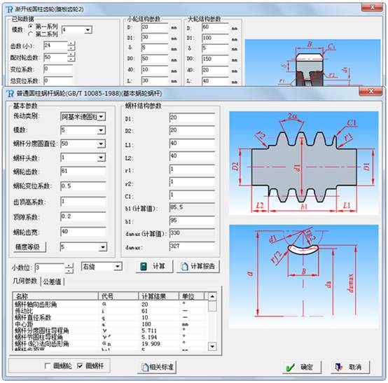 7、根據(jù)機(jī)械傳動(dòng)零部件的特點(diǎn),基于3D軟件開發(fā)了,直齒輪、斜齒輪、多形式腹板齒輪、錐齒輪、鏈輪、鏈條、V帶輪、同步帶輪、蝸輪蝸桿、棘輪、槽輪、凸輪、彈簧、花鍵等設(shè)計(jì)模塊;自動(dòng)生成齒輪參數(shù)表。模型生成后用戶可對(duì)模型進(jìn)行修改,如下圖: