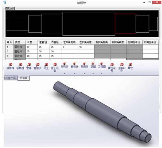 8、專業(yè)智能的軸設(shè)計(jì)功能包括:添加或刪除軸段或倒角,添加鍵槽、擋圈槽、退刀槽、中心孔等。如下圖: