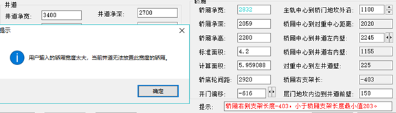 在選擇或輸入不同數據時,系統會自動做出判斷,所輸入的數據是否合理,并給出相應的提示,如轎廂凈寬值填寫成2832時,系統會自動報錯,用紅色文字提示錯誤的內容。