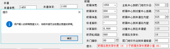 在選擇或輸入不同數(shù)據(jù)時,系統(tǒng)會自動做出判斷,所輸入的數(shù)據(jù)是否合理,并給出相應(yīng)的提示,如轎廂凈寬值填寫成1600時,系統(tǒng)會自動報(bào)錯,用紅色文字提示錯誤的內(nèi)容。如下圖。