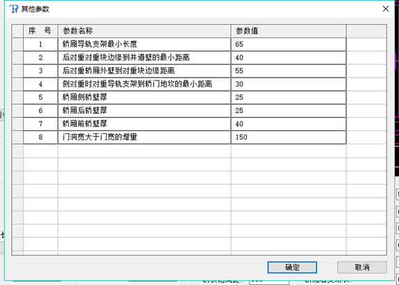 7.其它參數(shù)輸入界面,為了安全設(shè)計(jì)生產(chǎn),不同的廠家在設(shè)計(jì)別墅梯時,都有很多最小值設(shè)置、關(guān)鍵參數(shù)尺寸設(shè)置等,在其它參數(shù)界面中即可完成這些參數(shù)的設(shè)定,設(shè)定后系統(tǒng)會自動提取并計(jì)算,用來比對相關(guān)參數(shù)的輸入合理性,不同廠家參數(shù)不同,如下圖。