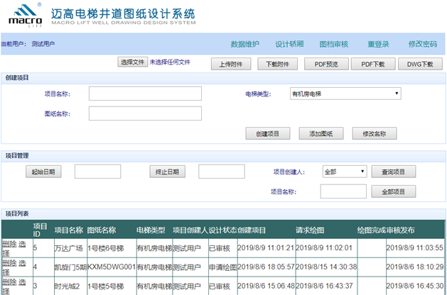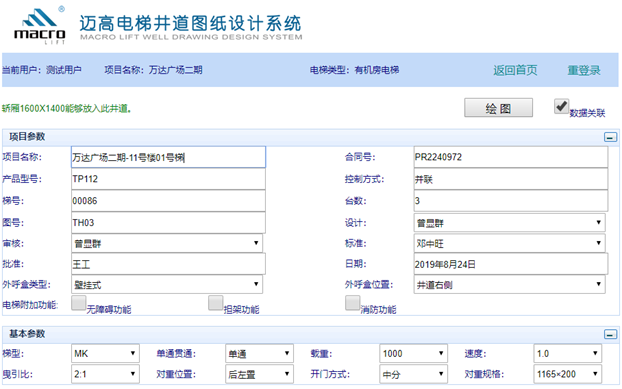 在電梯井道圖繪制的過程中,不同的廠家數據是不同的,我們現在就根據重慶邁高電梯廠的井道圖軟件數據為例,詳細講解《拓普銳井道圖軟件Web網頁版軟件》邁高項目的完成內容。