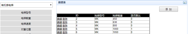 5. 數據維護:數據維護主要是用來更新電梯型號、電梯載重、電梯速度、對重位置、曳引機型號、轎門型號、層門門機、開門方式、開門速度、導軌、轎廂導軌、配重導軌、轎廂數據、頂層底坑、支反力、限速器、井道壁結構等參數值,有權限的用戶可以修改添加各個參數序列值,如下圖: