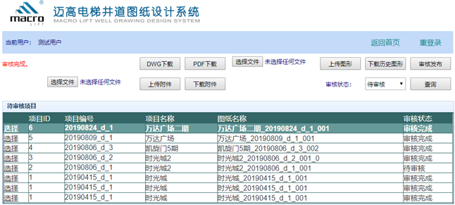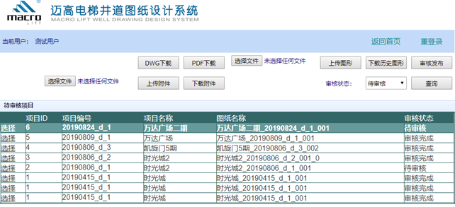 8、圖檔審核:有些企業對用戶上傳的數據生產的圖紙需要審核才可以下載,圖紙的審核需要有權限的用戶在線完成,選擇需要待審核的項目圖紙,之后點擊審核發布即可,有些企業的圖紙無需審核即可下載,審核前如下圖: