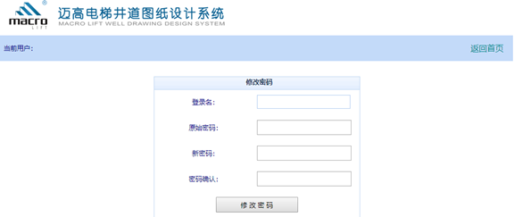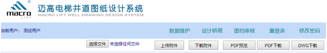 3. 用戶權限的工程師登錄后,網頁界面包括:數據維護、設計轎廂、圖檔審核、重登錄、修改密碼等內容,登錄后如下圖: